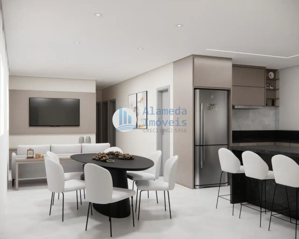 Sala estar integrada com sala de jantar.